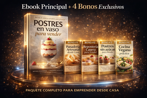 Recibís el ebook completo con 40 recetas profesionales + el sistema paso a paso para vender, más 4 bonos extra para ampliar tu oferta. Todo en formato digital y listo para usar.
